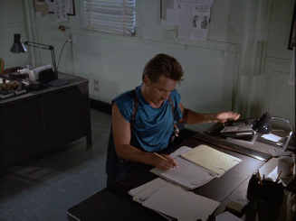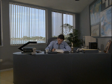 Then we cut to Frank. He is in his office (40 S. Hibiscus Dr.) struggling with his dilemma.