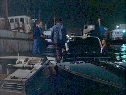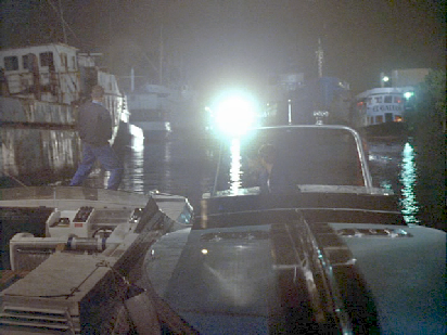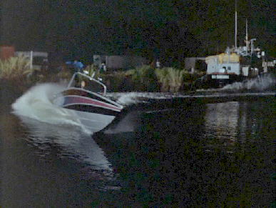 The boat the dealer is on is old and crusty and does not look like it would even run. This is a rare mistake for Miami Vice. They must have been counting on the dark of night to hide the condition.