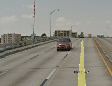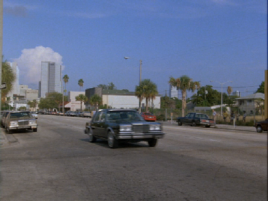 Then we see Crockett and Tubbs driving to the meet. Thanks to Harold Loeser we know this was filmed eastbound at the west end of the 79th Street Causeway.