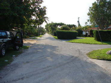 He receives a phone call then we see him driving down a residential street. He is driving eastbound on South Hibiscus Drive toward the house where we just saw him in the office.
