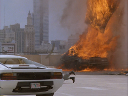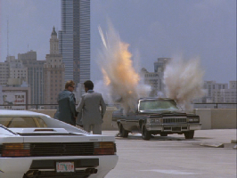 The limo arrives as do Crockett and Tubbs atop the Omni parking garage. Limo stops at the south end.