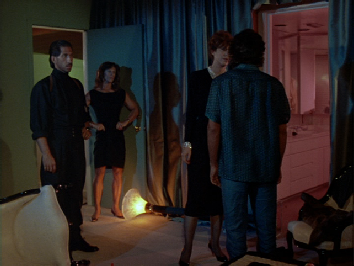 Then we cut to an apartment or hotel room. Location unknown but could be a set at the studio. Here we see Tico attack a prostitute, Jan Larken. He is so out of control that he believes he has killed her even though she is just faking it.