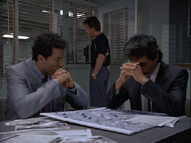 Then we see Crockett, Tubbs, and Castillo at the O.C.B. (studio set).