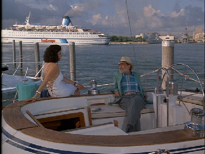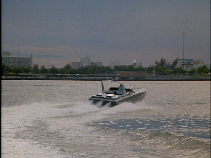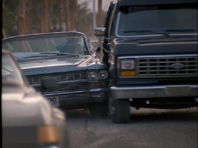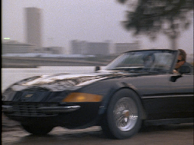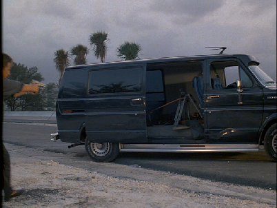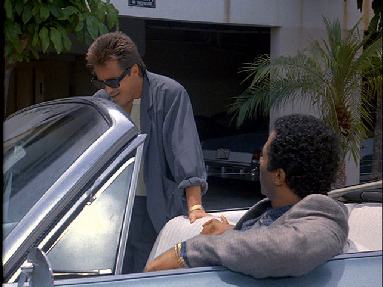 We returns to the Rickenbacker where the van catches up to the Daytona and opens fire. Crockett decides the best idea is to drive by the machine gun at point blank range a second time.