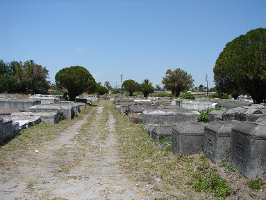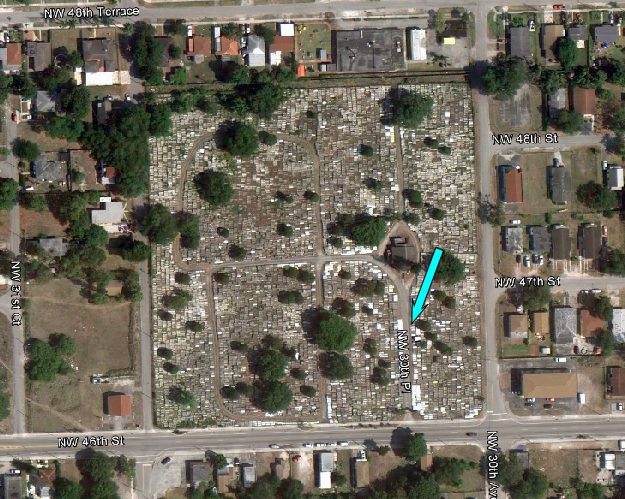 Next we cut to a cemetery. This was filmed at the Lincoln Memorial Cemetery, 3001 NW 46th Street, Miami.
