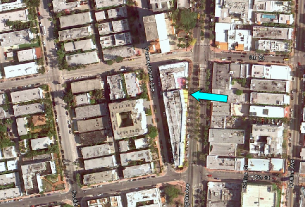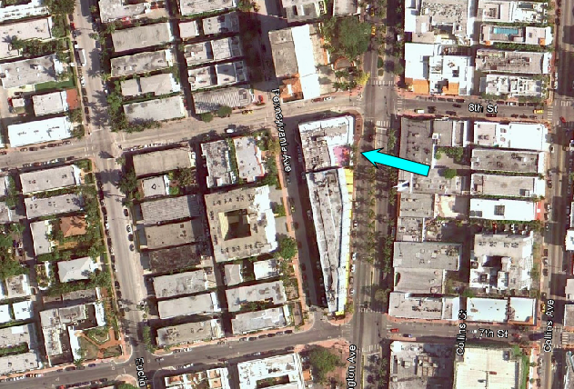 We see Crocket and Tubbs walk out of the Royal Four Hotel and head south on Washington Ave. They stop at Tubbs’ Cadillac parked in front of 752 Washington Avenue.