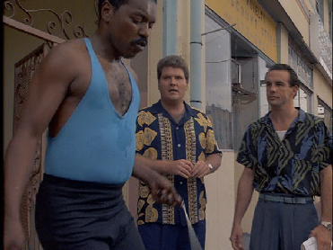 Goof: As Crockett and Tubbs arrive southbound on Washington Ave they pass a real cop stopping traffic for the filming.