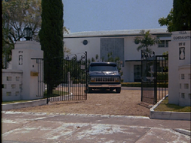 Then we see intercut the Bolivian’s enforcers getting prepared and leaving Mendez’s house. This was filmed on the Venitian Islands at 37 East Rivo Alto Drive. Thanks to miamijimf at miamiviceonline for the nice picture of Mendez’s house as it appeared in February 2012.