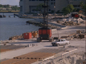 Next we see the meet at Bayside. We get a great view of the full renovation of Bayside and the construction of Bayside Marketplace. They park just a few yards from where Crockett and Tubbs parked at the start of Nobody Lives Forever to examine the abandoned car.