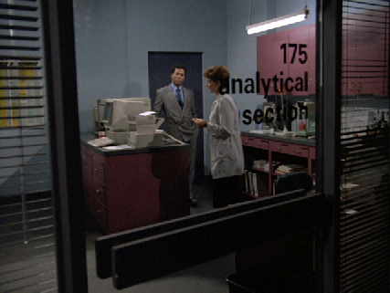 Then we go to the lab. Location unknown but likely a set at the studio.