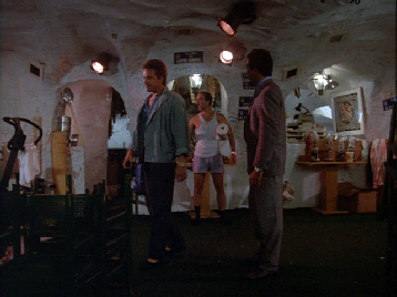 Crockett and Tubbs go inside. The interior is very realistic. The look one would expect of a restaurant called, Las Cuevas Del Sacromonte. The caves of the Sacromonte. Sacromonte is a hill next to Albaicin, the old Arabic section of Granada, Spain famous for it’s flamenco dancing. The people there live in caves dug out of the clay ground that look just like the inside of Izzy’s place.