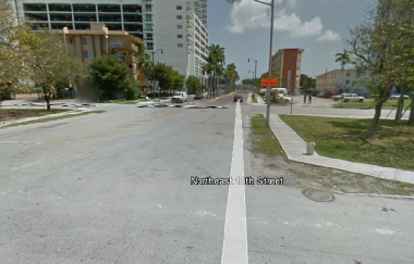 Then we see Clarence meet up with Tubbs on the street. This was filmed in the 160 block of East Flagler Street, Downtown Miami.