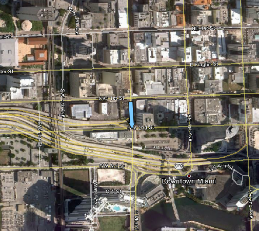 Then southbound on South Miami Avenue passing SW 2nd Street.