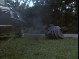SWAT moves in but one of the troops attacks the limo driven by Crockett. Not one of Vice’s finest moments as the lame explosion goes off way ahead of the slow moving limo and then Crockett leaps out the side of the limo that is under direct fire, manages not only to be unscathed but shoot the soldier. Not the most realistic vice scene.