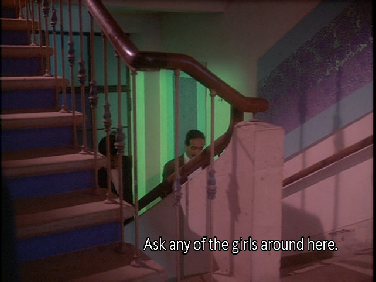 Then we see an exterior establishing shot of the OCB (Gold Coast Shipping) with a grey car at the corner. This is reused footage from When Irish Eyes Are Crying. The 23rd version of footage that we see of the OCB exterior in the series.