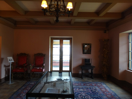 wall (over fireplace wall) and a temporary/false door has replaced the real door.