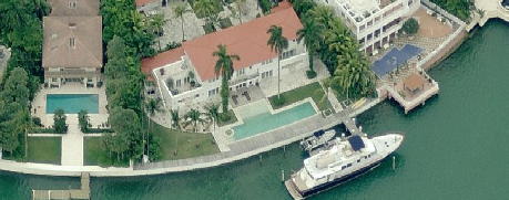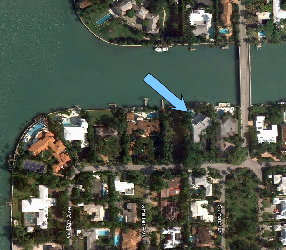 The episode starts with Jackson flying over Biscayne Bay and landing at Mueller’s house at 28 Harbor Point, Key Biscayne. Here it cuts before he reaches the house but we know that is where he is landing because this is reuse of the exact footage we saw in episode 43, Trust Fund Pirates.