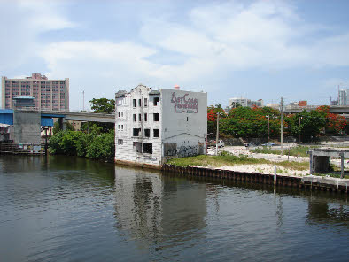 They continue north over the Miami River with East Coast Fisheries and the unique roof of the Scottish Rite seen in the background.