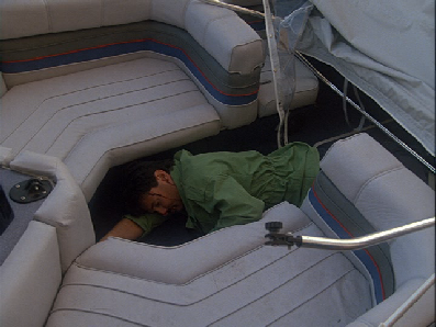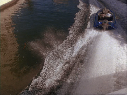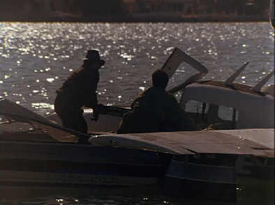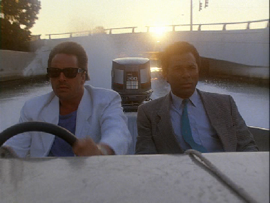 Then we see Crockett and Tubbs out on the bay watching. Not enough is shown to tell exactly where they are.