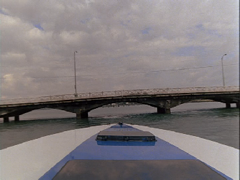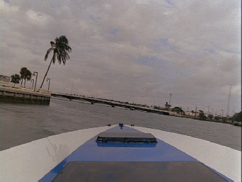 When it cuts, all of a sudden we see much darker water. That is because we have switched to the bay above the MacArthur Causeway.