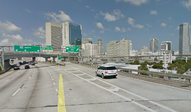 They exit I 95 on exit 2A to downtown and we see Bank Atlantic and Bank of America in the background.