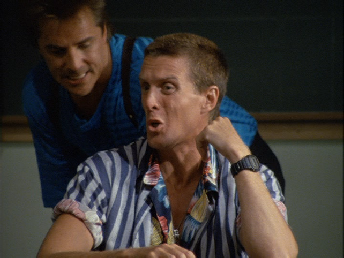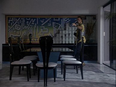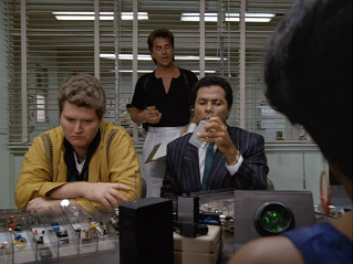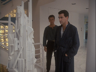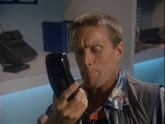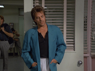 Then we cut to Dykstra’s house on Sunset Island 2 where we see Duddy sweeping for bugs.