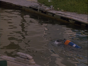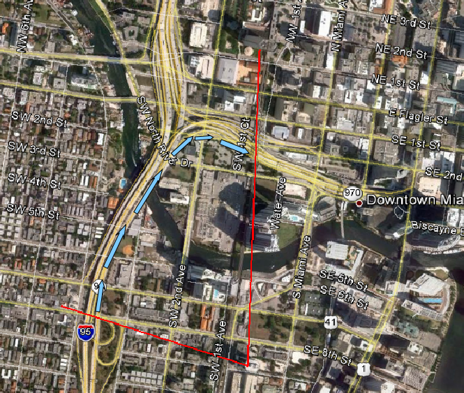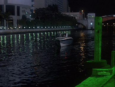 Then it cuts to the next morning and they have found McGregor floating in the Miami River. Apparently the river current had not moved the floating body overnight as they are still on the south bank of the Miami River opposite the Miami Convention Center.