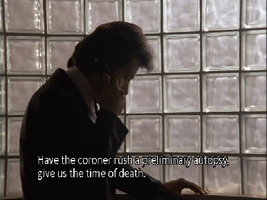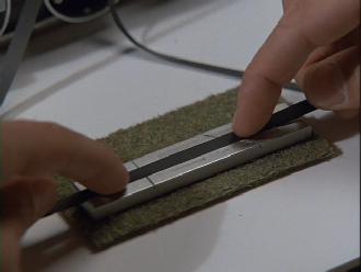 We then see Duddy splicing together a tape with the desired dialog. Probably a set but location unknown.