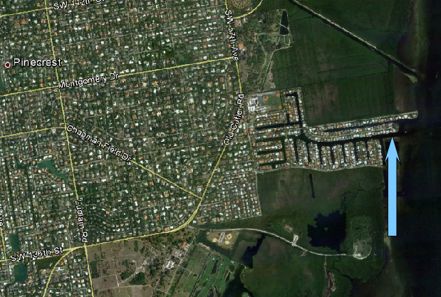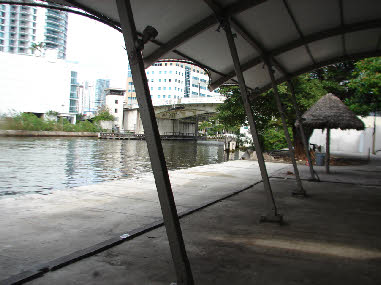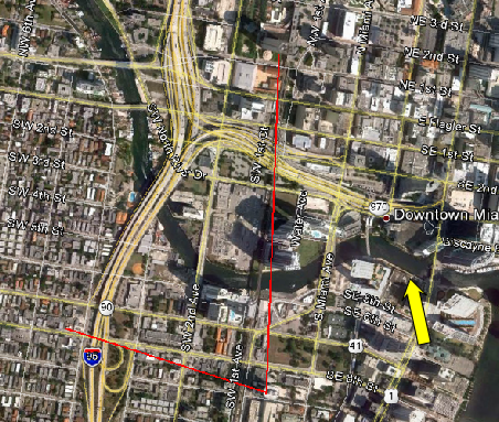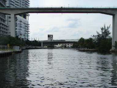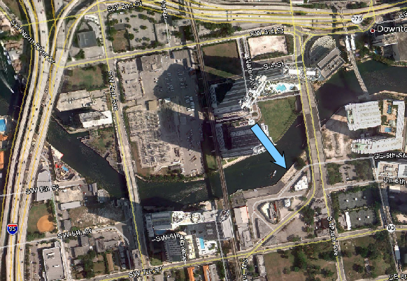 Then we see Dykstra on the Miami River. He is westbound and pulls up to a warehouse on the south bank of the river opposite the newly constructed Miami Convention Center.