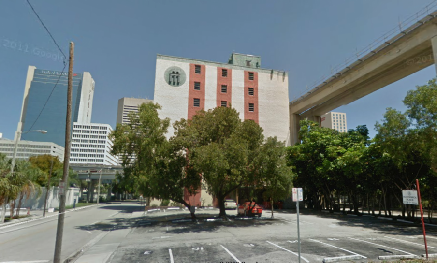 The pan continues as they head down the exit and we see the building in the 200 block of SW 1st Court.