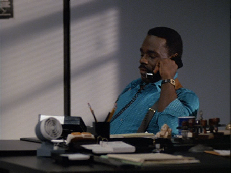 Then Dykstra notices the art work, otherwise known as wood scarps painted white, has been moved and calls in Duddy. All filmed at 1727 W 27th Street.