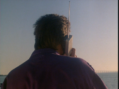Then we cut to Crockett who is on the phone getting a date. This was filmed at the Port of Miami with the Rickenbacker Causeway seen in the background.