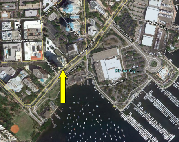 Then we see an establishing shot of the Biscayne Bay Yacht Club from atop the Double Tree Hotel shooting over the Verrick Arena. This is reused footage from Forgive Us Our Debts.