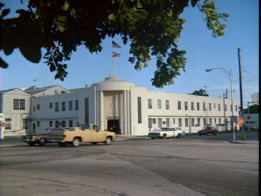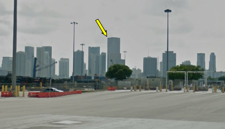 This leads them to Izzy’s studio. Filmed on location at 244 Biscayne Blvd, in Downtown Miami. The interior also seems to have been filmed there, on location. A new building was constructed on this site in 2007.