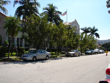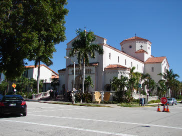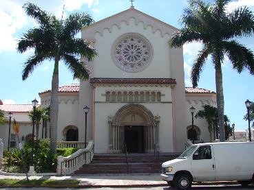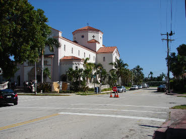 Act 1 opens outside a Miami Beach Church, at the Wire’s funeral. This was filmed on location at St. Patrick Church, 3716 Garden Avenue. We see this exterior view in the Burn Notice episode, Bloodlines. We see the interior of the attached church complex used in When Irish Eyes Are Crying.