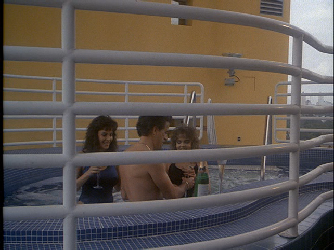 Then we see C+T talking to the operator of the limo service at the Clevelander. The parking lot where they talked is no longer there. The spot has been incorporated into the swimming pool area.