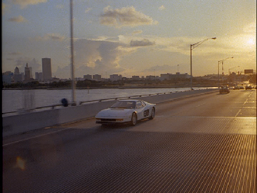 Then we see Crockett get a call from Gina as he drives along down a large bridge. Not enough is seen to positively identify his location but it is most likely that he is eastbound onto Watson Island.