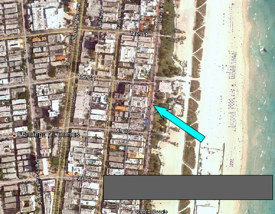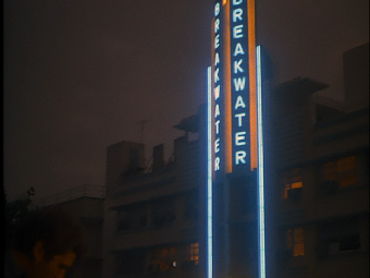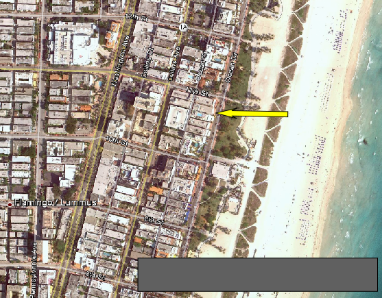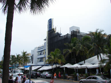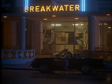 Then we see Victoria pull up to the front of the Breakwater Hotel, 940 Ocean Drive, Miami Beach. Stan is across the Drive watching.