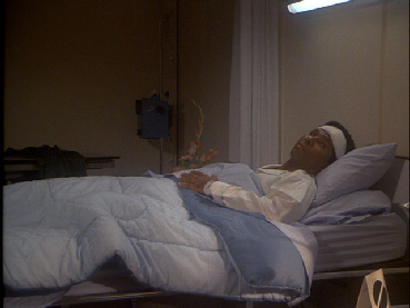 Then we cut to the hospital where thick headed Tubbs is going to be fine. This was filmed on set at Greenwich Studios.