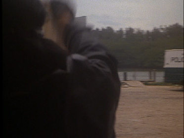 Then we see the Metro Police arrive directly outside the biker’s hideout. They arrive southbound on No Name Road. Clearly none of the approaches from the north (bikers. Stan, uniforms) would be possible in reality.