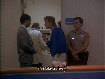 Then we go inside. Thanks to Tom at miamiviceonline.com we know that this was filmed at Mt. Sinai Hospital, 4300 Alton Road, Miami Beach. We have seen this location used in the movie Tony Rome and we will see the same location used again in Amen..Send Money and Line Of Fire. Thanks Tom.