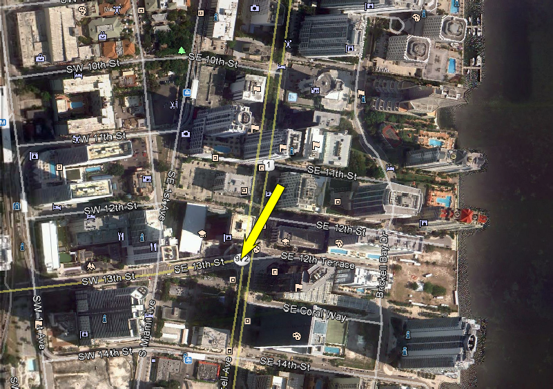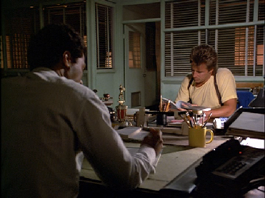 Then we see Crockett and Tubbs driving by Miami Today. Thanks to Harold Loeser we know that this was filmed on SE 13th Street crossing South Miami Avenue headed east. It is not the same building that Miami Today inhabits now at 710 Brickell Ave. The Miami Today building we see here was on the SE corner of the intersection of S. Miami Ave. and SE 13th St. Thanks again Harold.