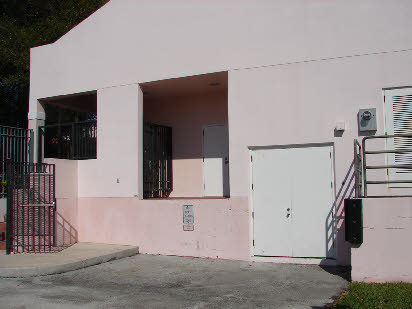 Then we see the Vice Squad arrive at the mortuary. This was filmed next door to the chess club at the 21st Street Recreation Center on Washington Ave., Miami Beach. We see Gina and Trudy arrive first. They are positioned at the rear, south west corner of the building.