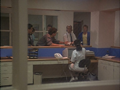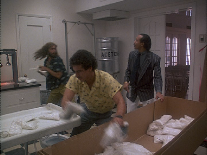 Then we return to the interior of the OCB where they figure out that Gallego is using a mortuary as a crack lab. Filmed on set at the studio.