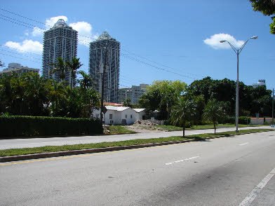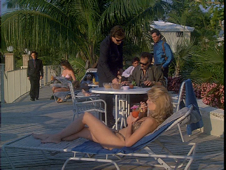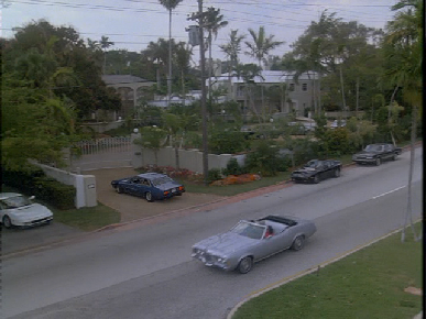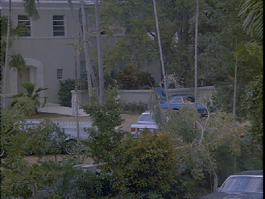 Act 1 opens with C+T outside a residence watching for the resident. This was filmed on location at 4950 Pine Tree Drive, Miami Beach.