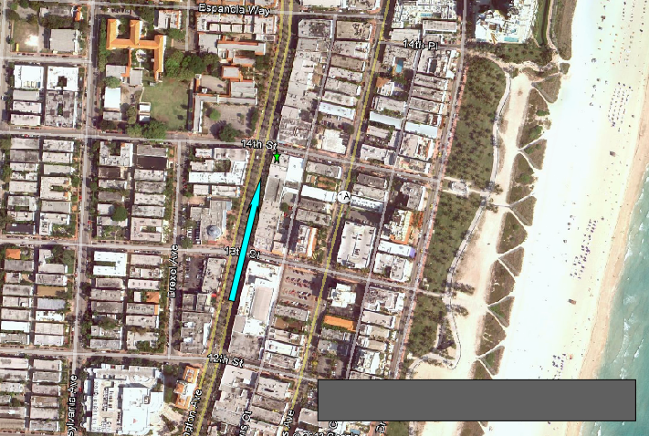 Then we see them southbound over the bridge back toward C+T’s location. This bridge goes over the waterway that Tubbs used to escape in the Pilot of Miami Vice. Stan is parked on the bridge facing south with the intersection of 51st Street seen in the background.