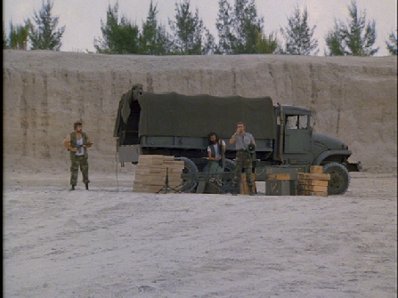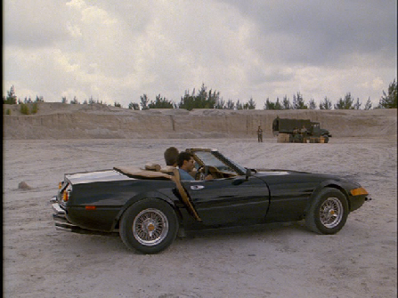 Then we see Crockett and Tubbs arriving in a gravel pit and meeting Eddie to pick up a truck load of weapons with their Daytona.