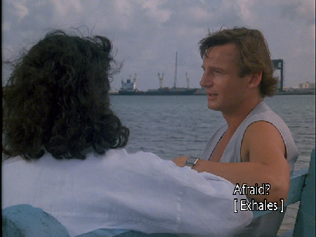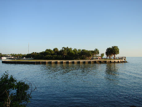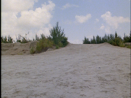Next we see Gina meet with Sean at a romantic bayside park. This was filmed at the north tip of Virginia Key. The beach has grown over with low vegetation now, but otherwise unchanged.