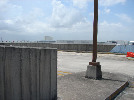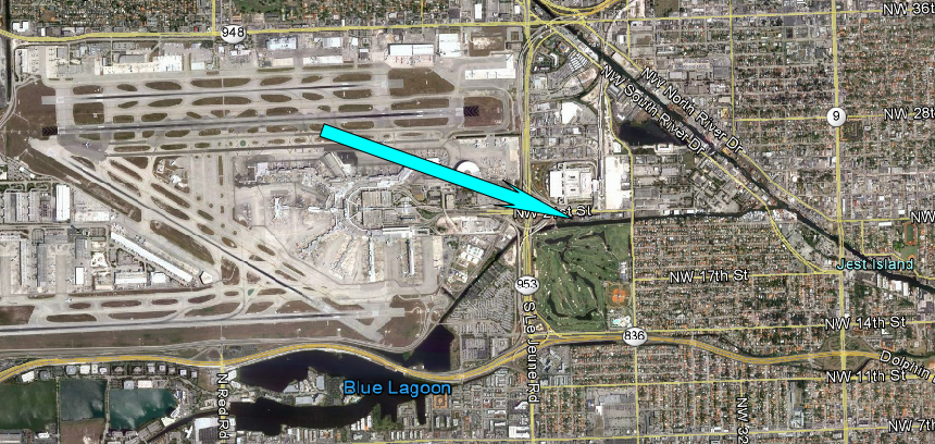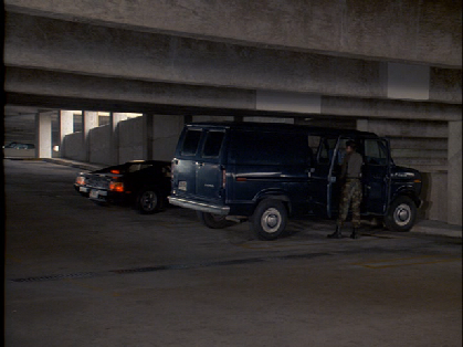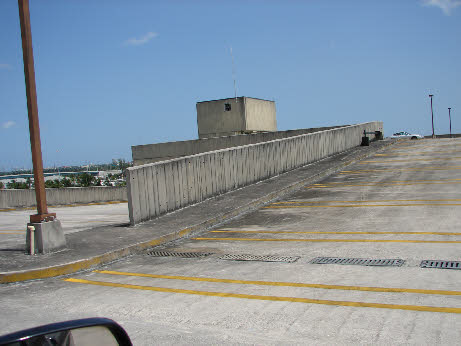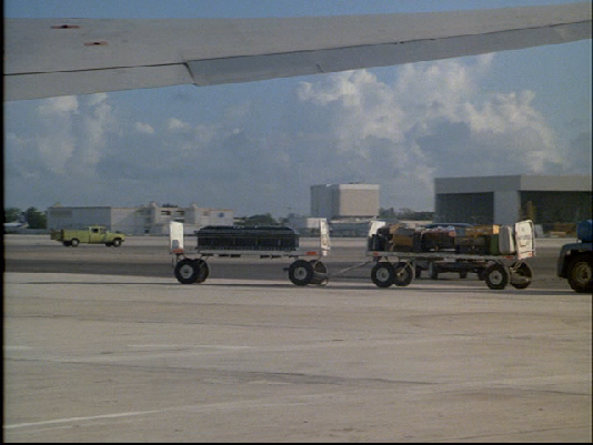 Then it is showtime. They leave the hotel with their tail and it cuts briefly to Castillo’s helicopter hovering above. Then we see Berrigan and Carroon pull into a parking garage. This is actually the police garage at Miami International Airport. At the time it was Pan American Parking Lot # 1.