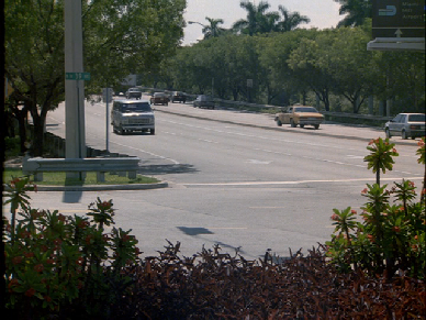 Bunny has pulled into Carroon’s hotel. This was filmed, not at the Barcelona Hotel but out west by the airport where we just saw Berrigan turn. What at the time was the Sheraton Riverside, 3900 NW 21st Street. Now it is a Wyndham Hotel.